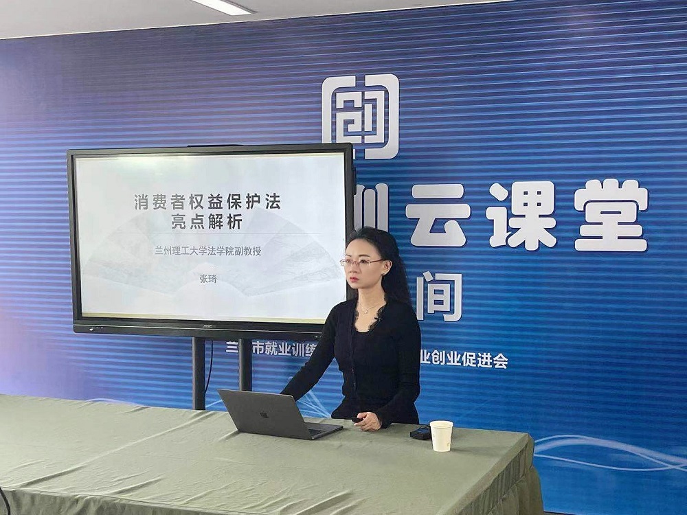3月15日,我院张琦副教授应兰州市城关区消费者协会邀请,通过云课堂为兰州市就业训练中心创业学员公益解读新修订的《消费者权益保护法》,让学员从创业开始就树立保护消费者权益的思维,从而促进消费和谐。