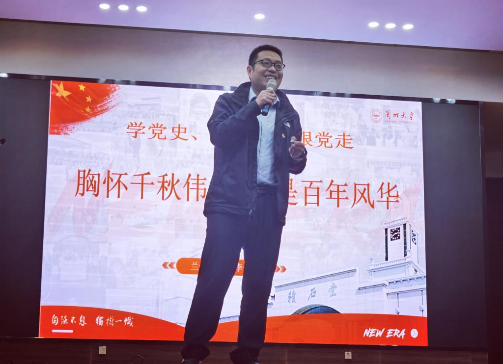 兰州大学全国辅导员年度人物提名奖、先后获得甘肃省微党课大赛一等奖等各级各类奖项60余项的哲学社会学院夏睿老师以《Finding A Niche:从党史中看打开大学的一百种方式》为题带领大家思考作为孜孜不倦的新青年,如何不断增强做中国人的志气骨气底气,自觉把个人梦想同祖国的前途、党和人民的事业紧密联系在一起。在攀登知识高峰的历程中追求卓越,让勤奋学习成为青春远航的动力,让增长本领成为青春搏击的能量,努力做能担重任的栋梁之材。