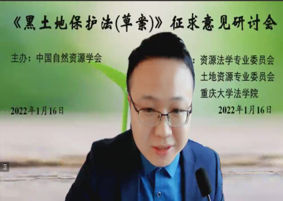 2022年1月16日,法学院欧俊老师作为特邀嘉宾参加由中国自然资源学会主办、重庆大学法学院承办的《中华人民共和国黑土地保护法(草案)》征求意见研讨会在线会议,并进行专题发言。重庆大学、东北林业大学、兰州理工大学、辽宁省锦州自然资源局等部门的30余位专家学者和实务工作者参加了会议。