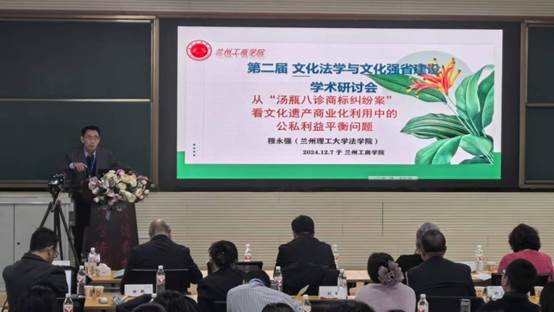 会上,兰州理工大学法学院穆永强副教授与中国人民大学法学院王云霞教授、广州大学人权研究院谢晖教授、中央党校(国家行政学院)刘锐教授、中南财经政法大学法学院麻昌华教授、中南大学文化遗产研究院院长易玲教授、中央民族大学法学院田艳教授、中国传媒大学文化产业管理学院李丹林教授、故宫博物院张剑虹研究馆员、兰州大学法学院院长迟方旭教授等分别作了主旨发言。穆永强的发言,结合具体案例,深入剖析了文化遗产在商业化利用过程中的利益冲突与法律规制路径,展示了文化法学个案深度研究的新尝试。