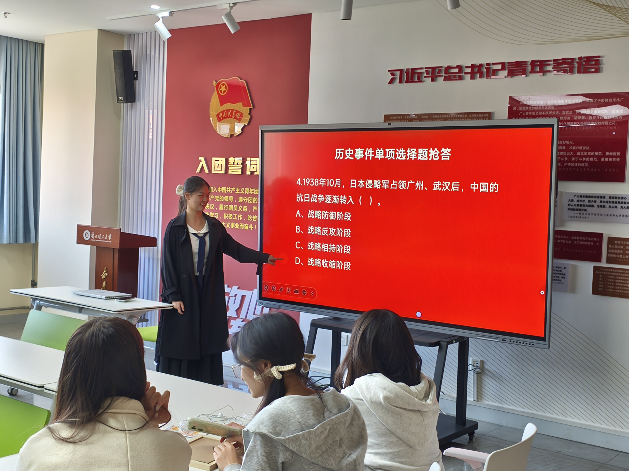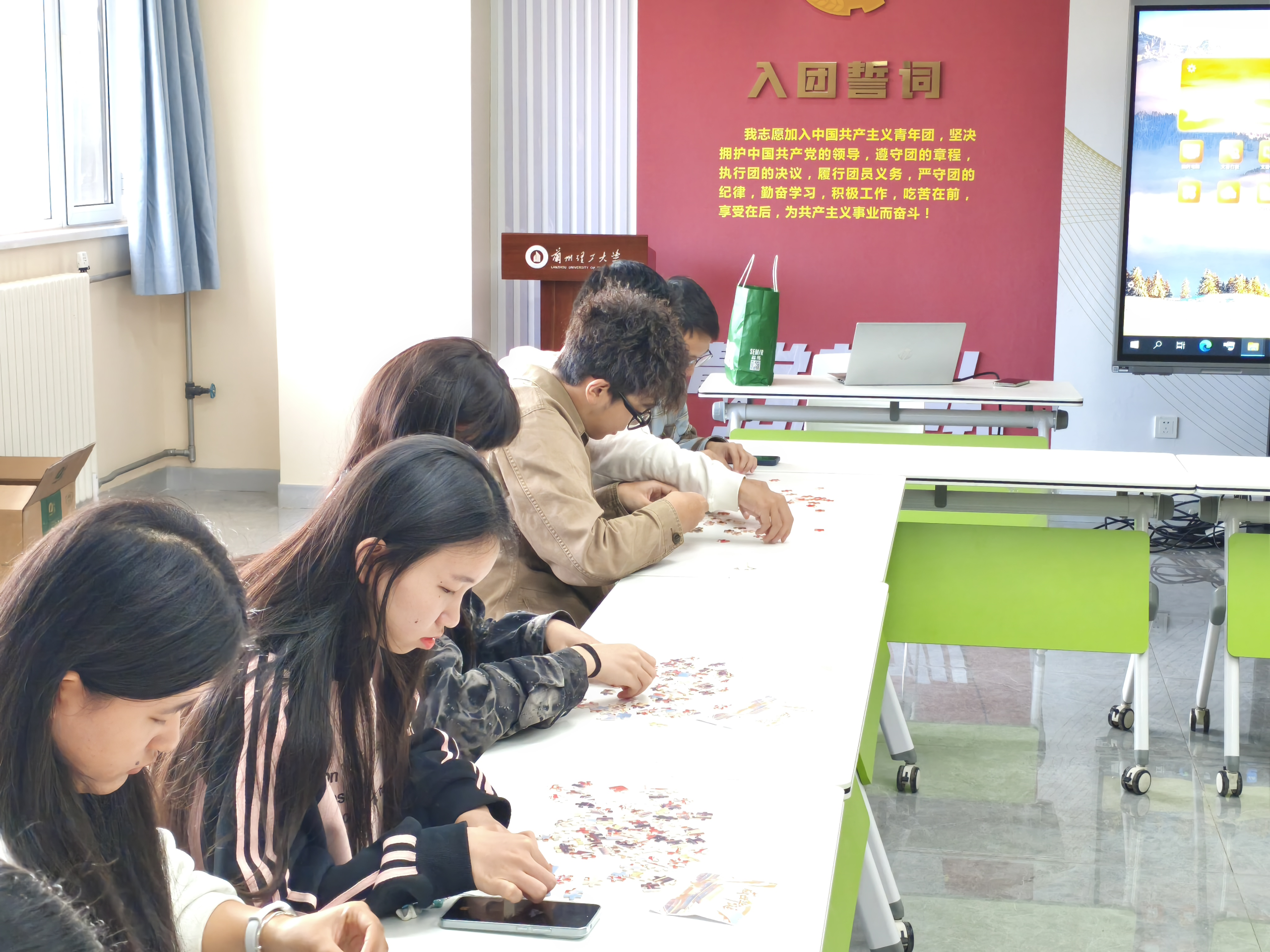 活动通过多种形式传播红色精神,激发团员们的爱国热情。首先,团员们集中观看了纪念大会影像资料,通过庄严的阅兵场景感受国家的强大与自信。在知识竞赛环节,团员们围绕抗日战争历史、英雄人物和重要战役展开热烈抢答,竞答环节加深了团员对抗日战争历史的理解。退役大学生士兵赵明慧与党怡春分享了红色故事,结合个人军旅经历,展现了军人英勇无畏的精神,感染了在场的每一位团员。活动还设置了红色主题拼图大作战,团员们分小组协作拼图,通过再现经典历史场景,增强了团队合作精神和爱国情怀。活动的最后,播放了关于兰州纪念馆和“三下乡”红色文化宣传的采访视频,展示了各界对于革命历史的关注和铭记,也让团员们更深刻地体会到革命文化的时代意义。