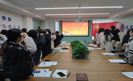 会议第三项,新党员面对党旗宣誓,老党员重温入党誓词。党员同志们纷纷表示在此会议中点燃了当初入党的那份情怀,感受到作为一名共产党员的荣誉和责任。一定会牢记共产党员的政治责任和历史使命,不断保持共产党员的先进性,以更加饱满的热情投身各自工作,切实发挥共产党员的先锋模范作用,永葆共产党员的政治本色。(供稿人:李昕彤)