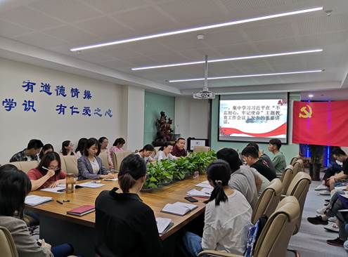 最后,法学院党委薛小勇书记结合此次会议与支部的实际情况指出,“不忘初心,牢记使命”这一主题是今后支部应当长期坚持的一项重要的学习内容,每一位党员都要紧紧围绕中心工作,立足自己的岗位实际,将其学深学透、融会贯通。习近平总书记在“不忘初心、牢记使命”主题教育工作会议上的讲话中强调,为中国人民谋幸福,为中华民族谋复兴,是中国共产党人的初心和使命,是激励一代代中国共产党人前赴后继、英勇奋斗的根本动力。开展“不忘初心、牢记使命”主题教育,要牢牢把握守初心、担使命,找差距、抓落实的总要求,牢牢把握深入学习贯彻习近平新时代中国特色社会主义思想、锤炼忠诚干净担当的政治品格、团结带领全国各族人民为实现伟大梦想共同奋斗的根本任务,努力实现理论学习有收获、思想政治受洗礼,确保这次主题教育取得扎扎实实的成效。薛书记还指出:“大家一定要重视起来,要加强学习,也希望各位党员牢记入党誓词,不忘初心,做好先锋模范带头作用。新党员要牢记今天这个日子,毕业生党员要协助支委委员做好做细档案及党组织关系转接工作。”