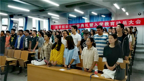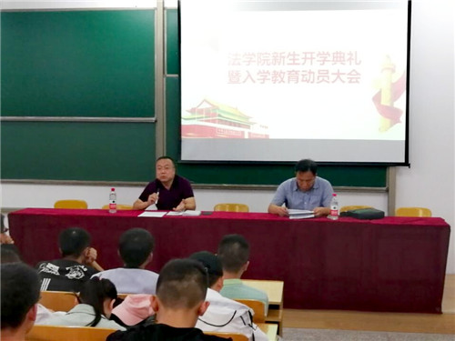 2018年9月1日,秋高气肃,又是一年金秋时节,生机盎然,160名来自五湖四海的优秀青年学子满载期望与憧憬,来到来到兰州理工大学法学院,展开一段新的人生历程。法学院在彭家坪校区举行2018级新生开学典礼暨入学教育动员大会。法学院院长吕志祥教授、薛小勇书记、贾小龙副院长、知产系乔煜主任、法硕中心袁峥嵘主任、法律系副主任王丽洁、辅导员、2018级全体研究生、本科生及部分新生家长参加了开学典礼暨入学教育动员大会,刘永军副书记主持大会。