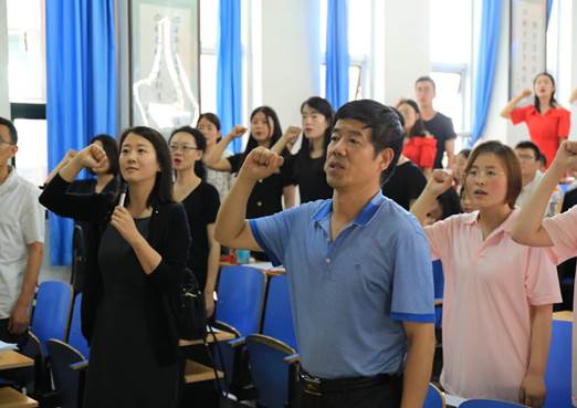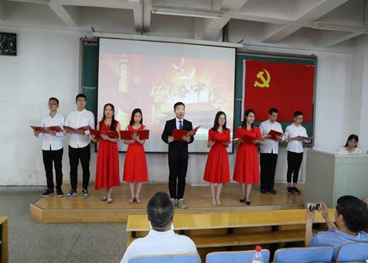 接着,由学院党总支委员、研究生党支部书记王丽洁带领全体党员进行集体宣誓。党员面对着党旗,右手握拳,庄严宣誓,重温入党誓词。这一刻党员的精神得到了升华,思想也随之得到提升,一种对共产党的热爱之情从心底油然而生。党员们表示:在今后的工作中要充分发挥党员的先锋模范作用,做一名有理想信念、有奉献精神、有责任担当、本领过硬、有优良传统的合格共产党员。
