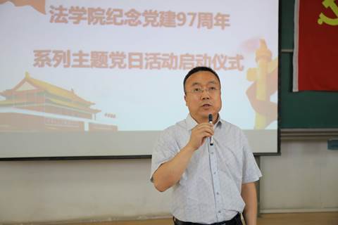 活动开始,全体参加人员起立,奏唱国歌,吕志祥宣布法学院庆祝建党97周年系列主题党日活动启动仪式开始,刘永军宣读了法学院关于开展庆祝建党97周年系列活动的文件。