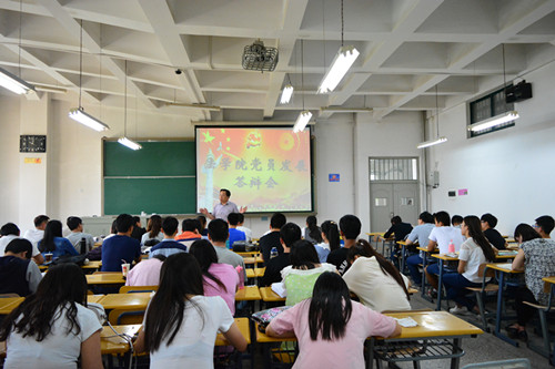为将深入贯彻落实“三严三实”专题教育活动与在大学生中发展党员工作紧密结合,进一步提高党员发展质量,使党员管党,从严治党工作落实、落细、落小,6月14日,法学院学生党支部在新校区召开新发展党员答辩会。法学院党总支刘永军副书记、学生党支部书记刘永军老师、辅导员吕树鹏老师及全体学生党员、普通学生代表参加了答辩会。