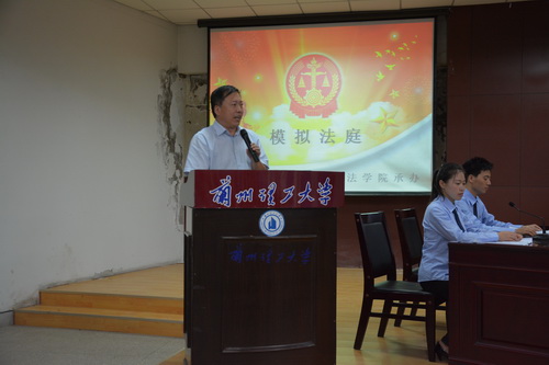 审判结束后,贾军副院长、李志忠副处长、吕志祥副院长先后进行了点评。贾军副院长立足于司法审判实际,从程序和实体两个方面对公诉方、合议庭、辩护方等不同角色的表现进行了点评。李志忠副处长在点评中简要回顾了法学专业的成长历史,肯定了法学院取得的成绩,展望未来,提出殷切希望,并表示学院十分重视实践教学,愿意同新成立的法学院共同努力,不断丰富法学专业实践教学形式、提升实践教学内涵。吕志祥副院长在总结中对实验室管理处、教务处等职能部门长期以来对法学专业实践教学给予的大力支持表达了衷心的感谢,对模拟法庭指导教师、2012级法学专业本科生交出的满意答卷给予了充分肯定。