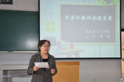 9月10日下午,学院“中青年教师讲课竞赛”在1南305教室举行,全体教师现场观摩。竞赛内容包括参赛教师进行30分钟的教学演示,评委及观摩老师现场提问,主讲人答辩等。8名参赛教师分别做了《中国近现代史纲要》、《大学生实用心理学》、《刑法分论》、《国际经济法》、《中国古代历史概览》、《西方文化概论》和《大学语文》等课程的现场教学演示。各位参赛教师运用生动的言语和身体表情,结合所讲课程的特点,将理论与实际相结合,使得理论知识更加通俗易懂,更易为学生所接受。