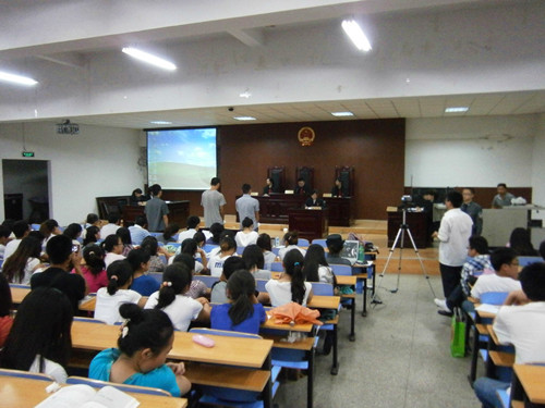 2012年7月6日下午,学院在西校区模拟法庭举办了09级模拟法庭全校公演活动,人文学院党总支书记张军成、马克思主义学院副院长景君学、副处级组织员魏虹、法学系部分教师和学生参加了活动。模拟公演活动由法学系副主任常丽霞主持。