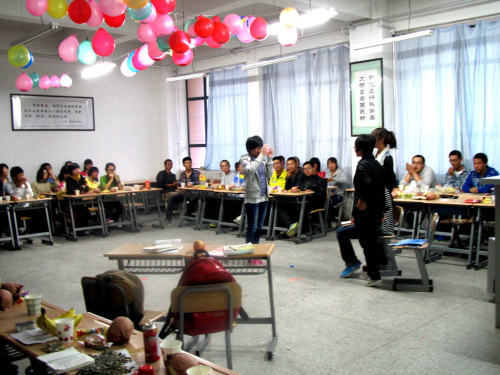 9月24日晚,学院2012级新生中秋晚会在西校区2号楼403教室举行,辅导员、班主任与全体新生共享节日的欢乐。在主持人幽默诙谐的引导下,歌舞表演,趣味游戏欢快有趣,师生们热情高涨。柔和的灯光,动感的音乐,美味的月饼,教室里显得热闹愉快又充满温馨。