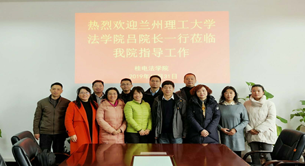 2019年12月31日,法学院院长吕志祥、法律硕士中心主任袁峥嵘、知识产权系主任乔煜、学工办副主任吕树鹏及研究生教学秘书张燕一行五人赴桂林电子科技大学法学院调研交流。