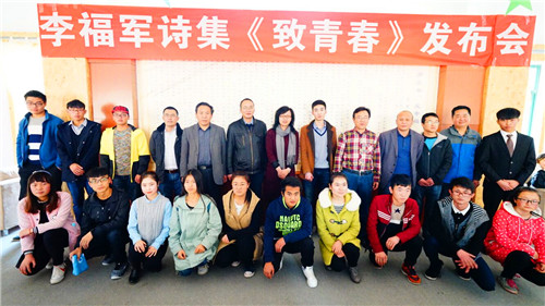 2016年11月20日,法学院在西校区人文书吧举办李福军同学诗集《致青春》发布研讨会。法学院党总支田波书记、文学院党总支任鹏书记、校宣传部高国礼副部长、法学院党总支刘永军副书记、校办齐伟建老师、文学院尚斌老师、法学院穆永强老师、岳文老师、吕树鹏老师、张生颖老师及学校行星诗会会员、法学院学生代表、甘肃省大学生各文学社团的成员代表100多人参加。发布会由学校行星诗会野子同学主持。