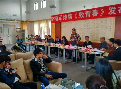 文学院党总支任鹏书记、宣传部高国礼副部长及与会的老师同学在研讨会上对李福军同学的诗集《致青春》给予高度的评价及肯定。高国礼副部长为李福军同学赠送了自己的书法作品,诗集作者李福军同学畅谈了自己的创作感受,他对诗集出版给予大力支持的甘肃省第一建设集团有限责任公司第十工程公司及法学院领导表示衷心感谢,并回答了与会同学的提问。
