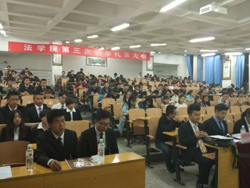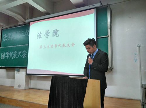 45日,法学院召开第三次团学代表大会。法学院党总支副书记刘永军,学生工作办公室老师以及我院团员代表、学生代表及兄弟学院学生会分团委代表出席了本次大会。大会由学院分团委吕树鹏老师主持。