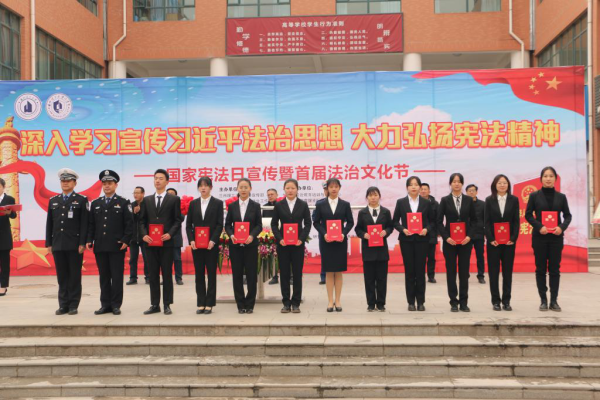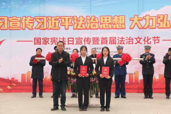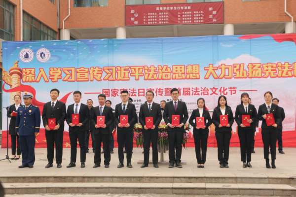 兰州理工大学国家宪法日宣传暨法学院法治文化节启动仪式于2020年12月4日中午12时30分在兰州理工大学彭家坪校区红柳广场举行。全体与会人员现场观看法学院学子在百年兰理工地标接力诵读的《宪法》视频,学习全文。在现场庄严的中华人民共和国国歌中启动仪式正式开始。启动仪式上学校党委常委曾华辉副校长为“红柳法学先锋”普法实践团新任导师共建单位特聘导师、刘宝玲、周义基、朱毅斌、马顺延、成峥颁发聘书。甘肃省法治教育培训与研究中心武晓红主任莅临活动现场,为多年来用实际行动宣讲《宪法》,引领学生“学宪法 讲宪法”自觉做宪法信仰的崇尚者、宪法精神的弘扬者、宪法权威的捍卫者,指导的学生团队多次获得省级、国家级奖项荣誉“红柳法学先锋”普法实践团荣誉导师兰州理工大学法学院原新利副教授颁发证书。启动仪式上党委宣传部常务副部长赵旭东宣读“红柳法学先锋”普法宣讲实践团导师名单、“红柳法学先锋”普法宣讲实践团志愿者名单。兰州理工大学法学院“红柳法学先锋”普法宣讲实践团充分发挥法学院学科专业优势,以“深入学习宣传习近平法治思想 大力弘扬宪法精神”为主题在2020全国宪法周之际已开展13场大中小学班级、团支部、党支部《宪法》巡讲,红柳青年积极参与营造“尊法、学法、守法、用法”法治社会氛围,以青春力量进一步推动校园法治文化建设、扩大法治教育覆盖面,加强受众普法教育。为鼓励先进志愿者,邓斌山、马孝林、李扬分别为“红柳法学先锋”本科生普法宣讲实践团本科生志愿者代表、研究生志愿者代表颁发证书。“红柳法学先锋”马成东同学代表全体普法志愿者发言,表达了作为新时代新青年深入学习宣传贯彻习近平新时代中国特色社会主义思想,在中国特色社会主义法治道路上昂首阔步,续写伟大新时代红柳新青年壮丽新篇章的“学习习近平总书记法治精神,红柳新青年开启时代新篇章”主题感言。“法律知识驻心中,法治校园我先行”法律知识及应用能力大赛作为序幕赛事近2000名同学入围笔试,历时一个月落下帷幕,马栋林、张君、贾小龙分别为获奖团队颁奖。