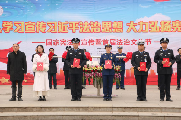 据悉,兰州理工大学国家宪法日宣传暨法学院法治文化节取124为核心的“1+2+4”模式,即“1个接力、2场比赛、4类宣传活动”。活动主题为“深入学习宣传习近平法治思想 大力弘扬宪法精神”,由兰州理工大学党委宣传部、学生工作部、校团委、保卫处、易班发展中心、创新创业学院、兰州理工大学法学院主办。兰州理工大学法学院分团委、学生会、研究生会、墨研月书法协会承办。兰州理工大学党委常委副校长曾华辉、甘肃省法治教育培训与研究中心主任武晓红、兰州市消防救援支队新闻宣传处副处长邓斌山、兰州市七里河区打击治理新型违法犯罪联席会议办公室主任马孝林、兰州市公安局交通警察支队龚家湾大队大队长李扬、兰州市公安局交通警察支队龚家湾大队副大队长周义基、兰州理工大学党委宣传部常务副部长赵旭东、兰州理工大学易班发展中心常务副主任马栋林、兰州理工大学保卫处处长张君、兰州理工大学法学院院长贾小龙,兰州市消防救援支队、兰州市七里河区打击治理新型违法犯罪联席会议办公室、兰州市公安局交通警察支队龚家湾大队宣传员、警官、兰州理工大学师生代表参加启动仪式。观看蕴含丰富法制思想,对法制教育具有启示由兰州资源环境学院师生现场展示的中国茶道《文化传承》;参观法治书画长廊墨研月书法协会红柳学子书法绘画作品展、联合主办单位法治宣传普法点、兰州理工大学保卫处普法知识展、和法学院法治达人打卡点冲关。