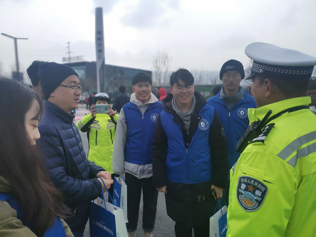 12月2日第九个“全国交通安全日”。为积极响应国家号召,增强大学生对交通安全的认识,助力龚家湾交警支队普法宣传,红柳法学先锋普法宣讲实践团志愿者前往彭家坪生态公园参加由兰州市公安局交通警察支队龚家湾大队主办的第九个全国交通安全日活动,学院学生工作办公室吕树鹏副主任代表学院与龚家湾交警支队挂牌普法宣传实践基地。兰州市公安局交通警察支队龚家湾大队大队长李扬与红柳法学先锋普法宣传实践团的志愿者代表亲切交谈,吕老师就加强普法宣传实践等方面表示将进一步加强合作,积极为同学们搭建平台。