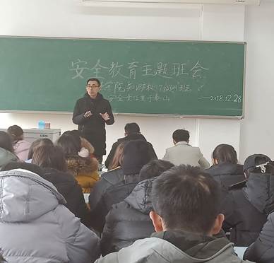 2018年12月28日中午,法学院17级知识产权1班班主任穆永强老师在1号楼201为本班同学开展了一次安全教育主题班会。穆老师强调,同学们一定要注意人身及财产等各个方面的安全,特别是平日里宿舍安全以及假期出行安全。同时还强调,同学们在认真学习的同时,一定要处理好舍友关系、同学关系、朋友关系、师生关系等各种关系,做到身心全面健康成长。穆老师要求同学们一定要排查各种安全隐患,防患于未然,尤其是平时用电安全,并要求班委监督完成。