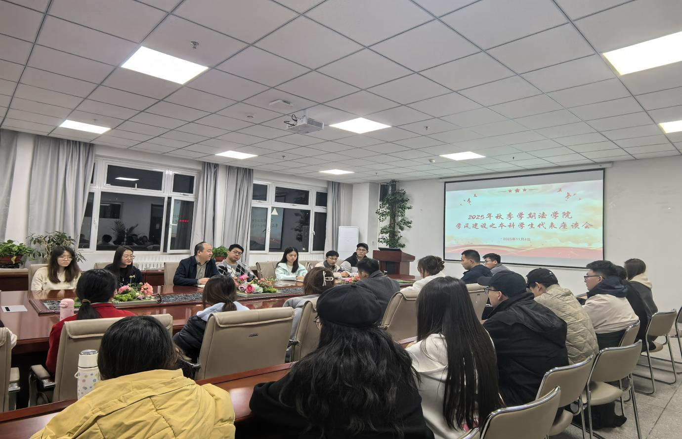为推动学院学风建设提质增效,法学院于2025年11月4日举办了2025年秋季学期法学院学风建设之本科学生代表座谈会。此次座谈会特别邀请了法学院党委书记孔德瑞,与来自大二、大三的学生代表们进行了面对面的交流,共同探讨学风建设与学生成长问题。