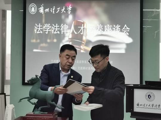 会上,北京市东卫(兰州)律师事务所冯伟主任向兰州理工大学法学院赠送了律所定制“马踏飞燕”纪念品及北京市东卫律师事务所出版的新冠肺炎疫情期间有关法律问题书籍。