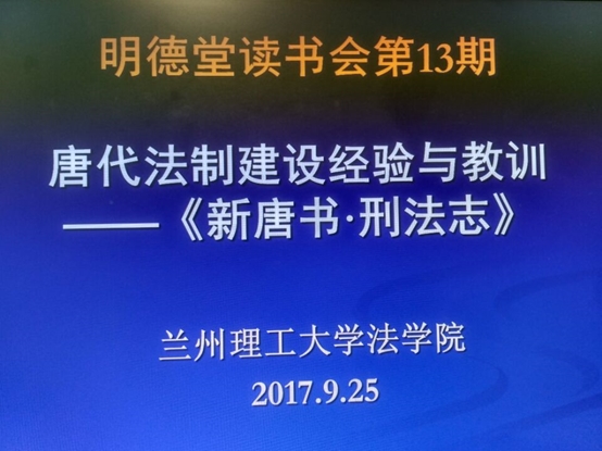 法学院研究生“明德堂读书会”第十三期于2017年9月25日成功举办。读书会由穆永强老师主持,2017级法律硕士研究生参加。本次读书会主题是“从《新唐书▪刑法志》看唐代法制建设的历史经验与教训。